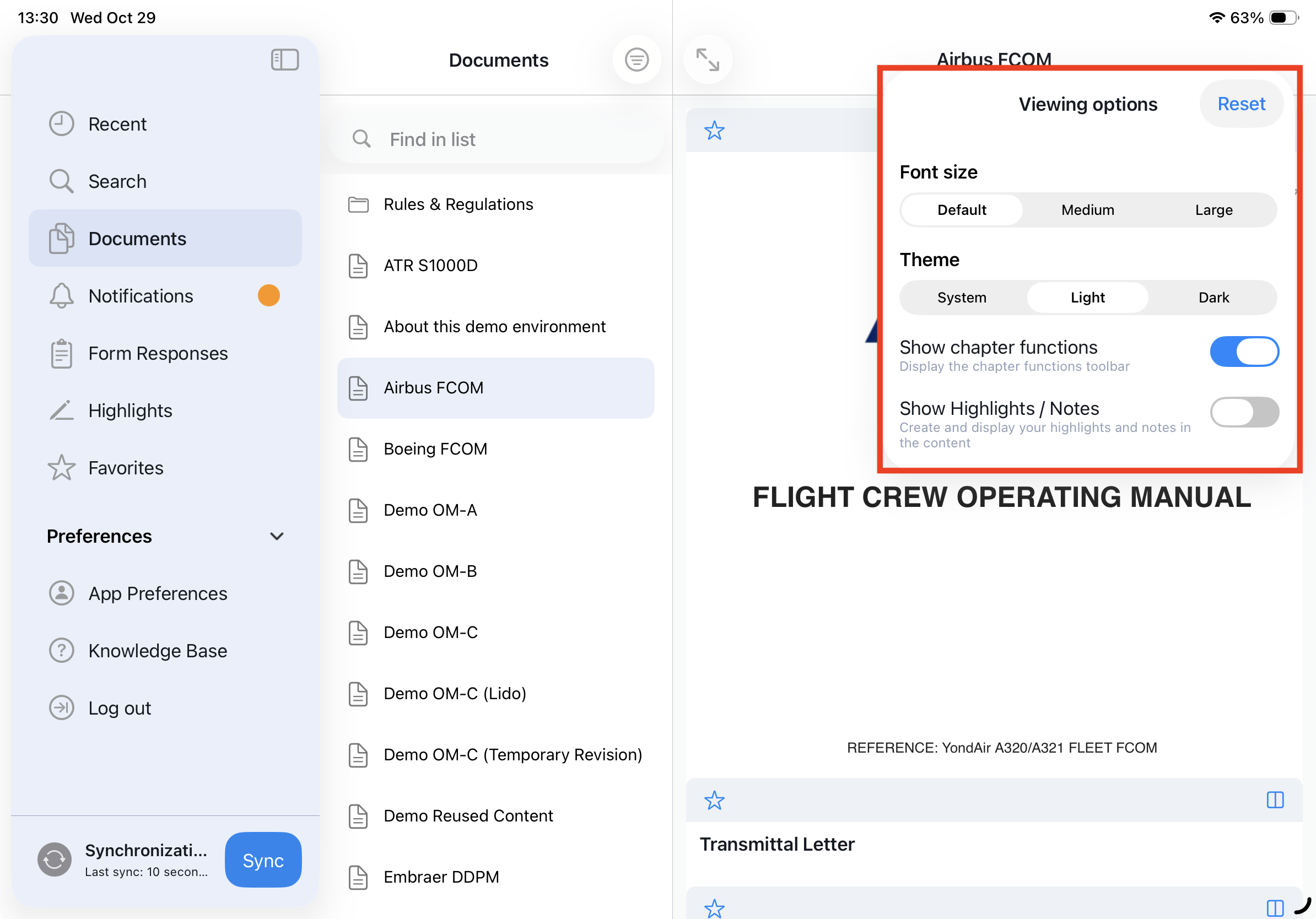 You can adjust how information is displayed in the app using the Viewing Options menu.